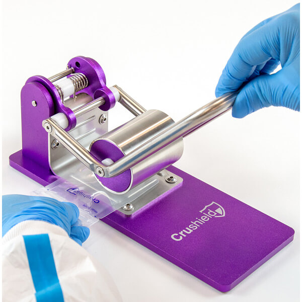 BCSP02 and BCSP03 (patent pending) are the only pill crusher pouches that should be used with the Crushield® Pill Crusher. These durable pouches help prevent cross contamination and has been tested for the best results. The pouch multi-layer heavy duty construction helps prevent puncturing or tearing which can result in lost medication. The zip seal and fold over closure options prevent emission of powder during the crushing process.